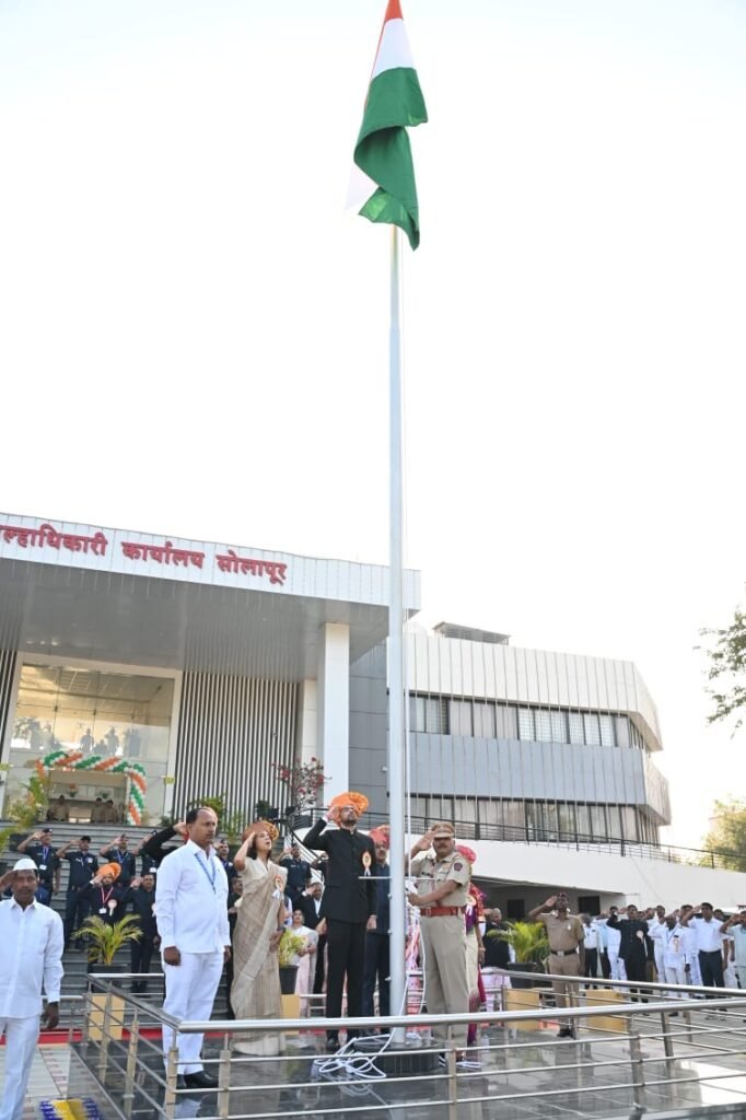 सोलापूर जिल्हाधिकारी कार्यालयात कुमार आशीर्वाद यांच्या हस्ते ध्वजारोहण