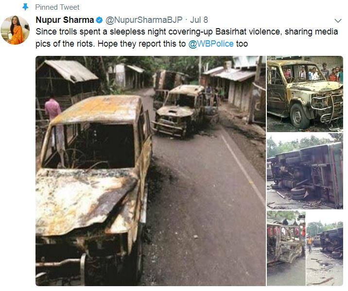 नुपूर शर्मा यांनी 7 जुलैला हा फोटो ट्विट केला. त्या म्हणाल्या, “आता बोलण्याची वेळ आली आहे. यापूर्वीच खूप उशीर झाला आहे. #SaveBengal आणि #SaveHindus हे हॅशटॅग वापरून, जनतेने जंतर-मंतरवर येण्याचं आवाहन केलं होतं.